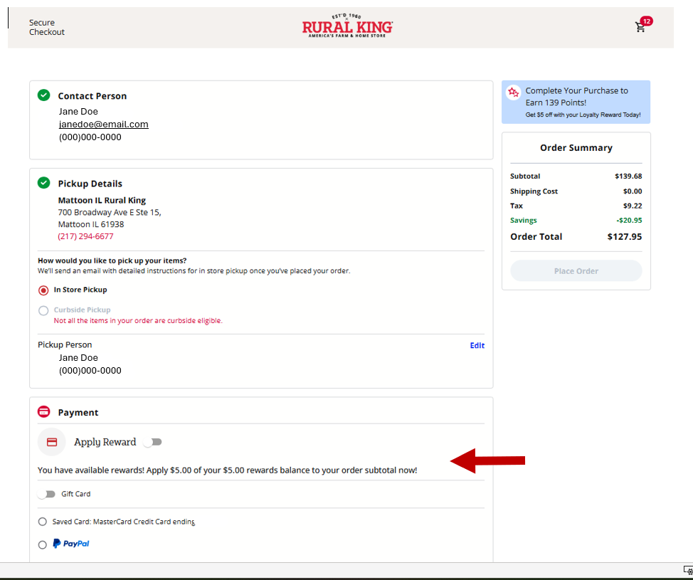 Online Redemption: Sign in to your account and head to your cart. Any available rewards will appear in the Payment Section during checkout.